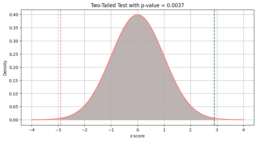 In Python both the z-score and the p-value can also be computed automatically using the statsmodels library, which provides built-in functions for two-sample proportion tests.
